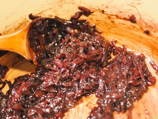 Although it may look like a pile of caramelized onions, slowly reduced red wine and balsamic vinegar make this sweet, fruity, and tart onion jam so much more.