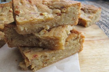 To portion, remove bars from the baking dish and place on a cutting board. Using a serrated knife, cut bars into squares, rectangles, or your desired shape.