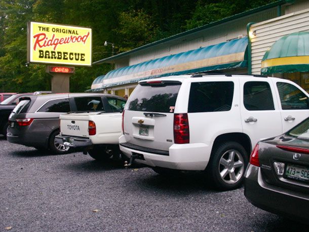 Smoked meat has been a part of daily life in southern Appalachia for about as long as there have been people there, but smoked meat in a sweet, tomato-based saucewhat we'd call "Tennessee-style" barbecueis most popular eight hours to the east in Memphis. Ridgewood Barbecue, which has been been tucked into the the side of lonely Bullock Hollow since the mid-1950s, straddles the gap between Memphis and Appalachia with its signature smoked ham.