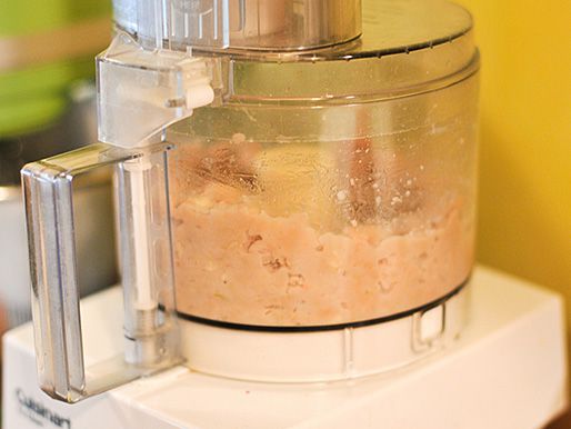 Place beans, garlic, and lemon juice in the workbowl of a food processor fitted with a steel blade. Pulse until beans are roughly chopped.