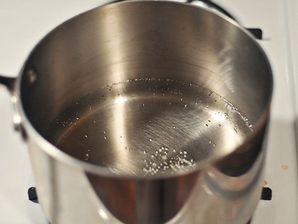Fill a medium saucepan with 1-inch of water and bring to a simmer over medium heat. Reduce heat to low.