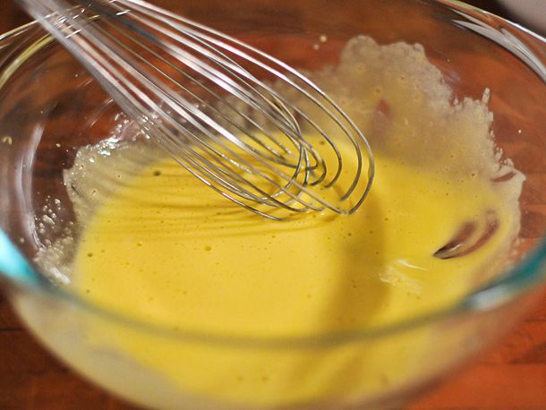 Place egg yolks in a medium bowl and whisk until they lighten in color, about 1 minute.