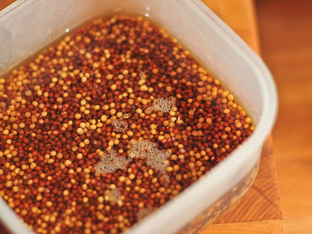 In a small bowl, cover yellow and brown mustard seeds with vinegar and 1/2 cup of beer. Cover and place in the refrigerator overnight.