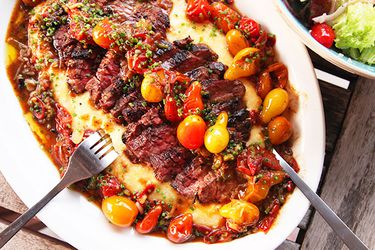 Meanwhile, for the Lemon-Brown Butter Sauce: Add butter to a small saucepan set over medium heat. Cook, stirring and swirling the pan every few seconds, until the foam subsides and the butter begins to turn golden brown and smells nutty, about 3 minutes. Off the heat, stir in garlic and let it sizzle for about 10-15 seconds, then add lemon juice. Season with salt and pepper; keep warm.