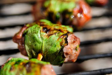I landed on a compromise. I cook my kebabs over a two-zone fire, starting with indirect heat on the cooler side of the grill until they're just about cooked through. You can take them off the grill and serve them color-free at this point, or do what I do: transfer them to the hot side a few moments earlier to color their exterior and add that extra dimension of flavor and texture.