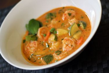 Unlike the majority of Indian curries, no spices need to be toasted and ground. A slow caramelization of onions with turmeric and paprika lends a deeply developed flavor not unlike that of French onion soup. Coconut milk, which is added towards the end of the cooking process, lends a note of sweetness to the broth.