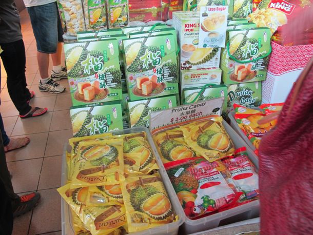 I did not have to look far. Durian is everywhere—in ice cream, pastries, custards, shaved ice desserts, and hard candies to suck on, just in case you really want the experience to linger. Fresh durian also looks scary, like some type of soft yellow fleshed alien life form inside a crazy spiked shell.