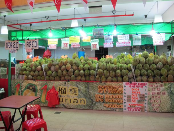 Especially during durian season in the summer months, the fragrance (or odor, depending who you ask) wafting from the many fresh durian stalls hangs over Singapore. When visitors come to my place, I do not disappoint. I take them right to my local fresh durian hawker, 101 Durian-Famous King of Durian Stand (ground floor, Chinatown Food Complex). During peak season, the varieties are overwhelming, but the staff will help you pick. My husband's boss is partial to Mountain Cat durians, so I gave it a try—at $20 a pop.
