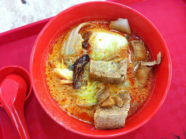 For the broth, the classic option is a clear one, but I always go for the drop-dead rich (and quite unhealthy, I'd imagine) curry laksa. Bursting with coconut milk, spicy chili, and seafood flavor, this soup will keep you going all day long if you let it start your day. My yong tao foo came to $4 Singapore dollars (about $3.20 US). This is a total steal, especially when compared to a $1.50 glass of lime juice!
