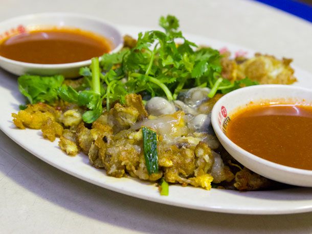 What happens when you add starch to a base of blended eggs, do basically everything you can to make a French omelet wrong, and then throw in some juicy, briny oysters at the end so they barely cook at all? You get one of Singapore's most beloved egg dishes, a crisp and creamy pile of rich eggs and refreshing oysters. The crusty bits are the thing, made all the better by a swipe through some hot sauce, if provided. New York restaurants: start making this for brunch and you will be swimming in fans. But this is one egg dish that, in Singapore anyway, you'll see people eating any time of day.
