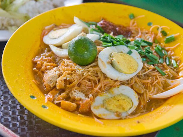 Thai food is notably absent from much of Singapore, where the cooking just doesn't have the foothold you'd expect, given the countries' proximity. One exception is mee siam, not a Thai dish per se, but one that takes note of the cuisine's penchant for blending sweet with citrus-sour and fishy flavors. This brothy bowl of vermicelli rice noodles can come with meat, seafood, fried tofu, hardboiled egg, or all of the above, along with a dab of sambal on the side. It's a sweeter, more citrus-herbal dish than you'll find by and large in Singapore.