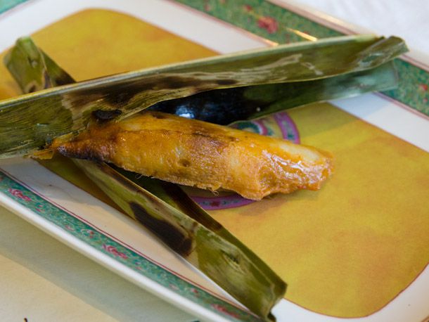 Singaporeans love their fish paste, especially when it features a mackerel-starch emulsion spiked with galangal, ginger, garlic, turmeric, shallot, and chili—all wrapped in a banana leaf and grilled. The fish gently steams in the leaf, picking up its herbal flavor along with some licks of smoke from the grill. If I had to compare it to anything, it'd be a hot dog. A fishy, spicy, steamed-grilled hot dog. Yup.