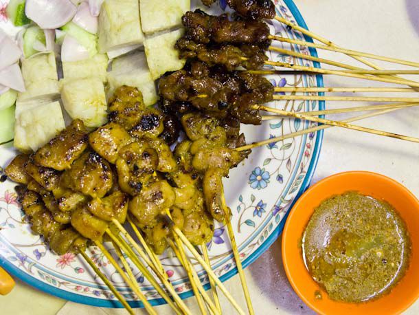 If you're eating in Southeast Asia, you're going to encounter meat on sticks. In Singapore, take advantage of the local fondness for mutton and get a spice-rubbed bite of charcoal grilled sheep on a stick. It frequently comes with Indonesian peanut sauce (less sweet and more nutty than the college town Thai restaurant versions in the U.S.), as well as cubes of cold rice. Skewer one with the end of your stick, swipe it through the sauce and a bit of rendered fat, and get to snacking.