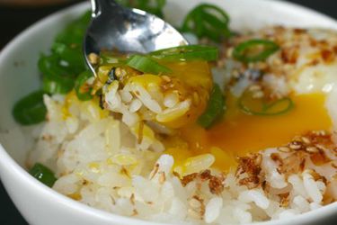 Raw yolk that easily mixes with a white that is barely set, but can be broken up with a spoon. Pretty, right? This is the type of eggs that the Japanese call onsen tamago, or "hot spring eggs." Given a hot spring of the right temperature, you can drop a half dozen eggs in as soon as you wake up and have a breakfast of soft cooked eggs waiting for you when you get back from your morning jog.*