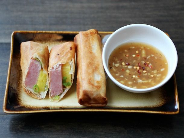 If sliced just right, Spam makes for an excellent spring roll filling—especially so when combined with slivers of fresh pineapple, toasted sesame seeds, and green onions.