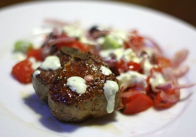 Lamb Loin Chops with Greek Salad and Yogurt-Lemon Sauce Recipe