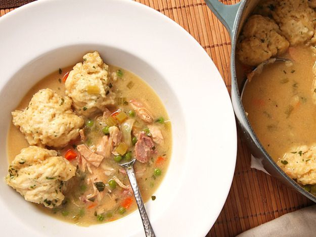 Pretty much any recipe that normally calls for cooked chicken can be made with leftover turkey instead. Case in point: this Thanksgiving-ified version of chicken and dumplings made with broth, aromatics, and biscuit-like drop dumplings. As with the previous soup, if you have leftover gravy then throw a little in to thicken the dish