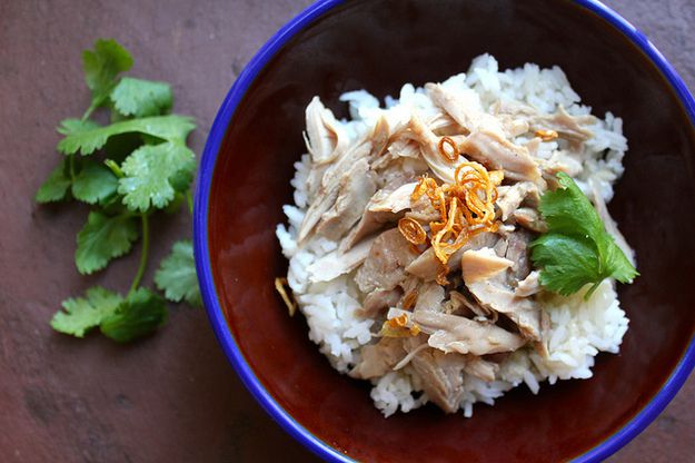 You probably don't associate turkey with Asian cooking, but in Taiwan it's traditional to use turkey in a dish very similar to better-known Singaporean chicken rice. Generally, the dish is made with steamed turkey, but leftover roast turkey works, too. If you thought ahead to save the pan drippings when you cooked the bird, you can use them to make a savory sauce.