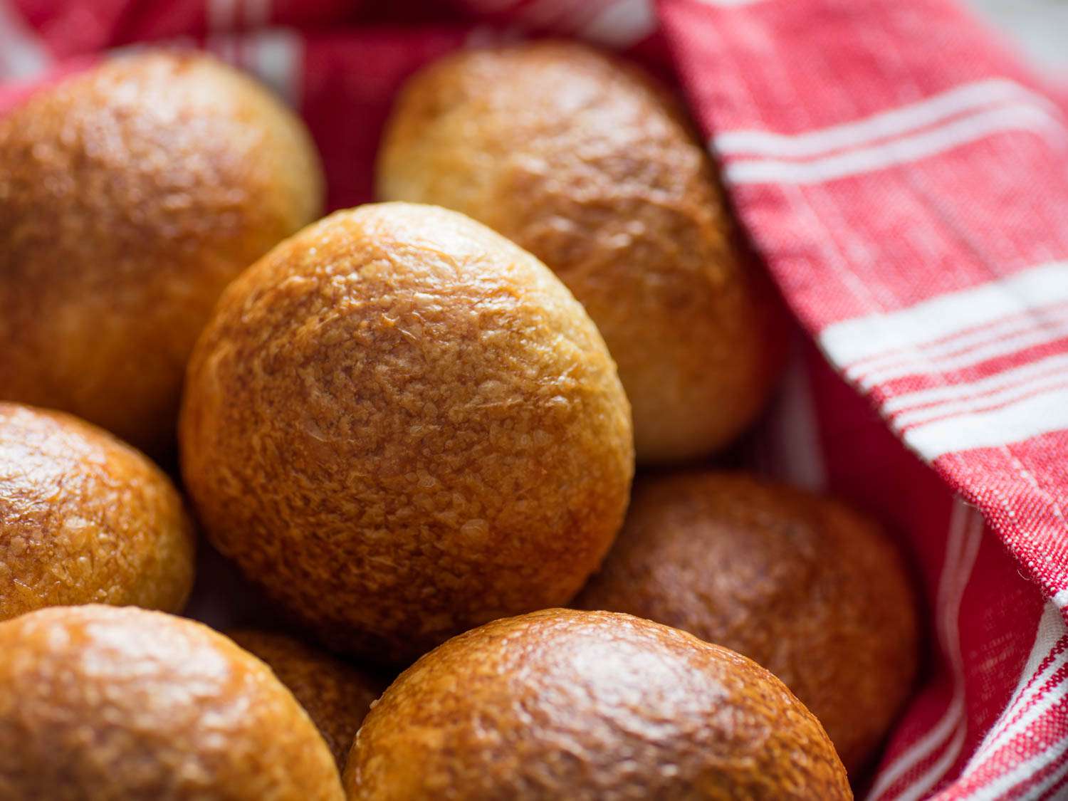 These rolls are fluffy on the inside but have a crackly crust sturdy enough to stand up to all of the mashed potatoes and gravy you throw at them. We get that crust using a technique that will be familiar to anyone who has made bagels: boiling the dough to gelatinize its starch before baking.
