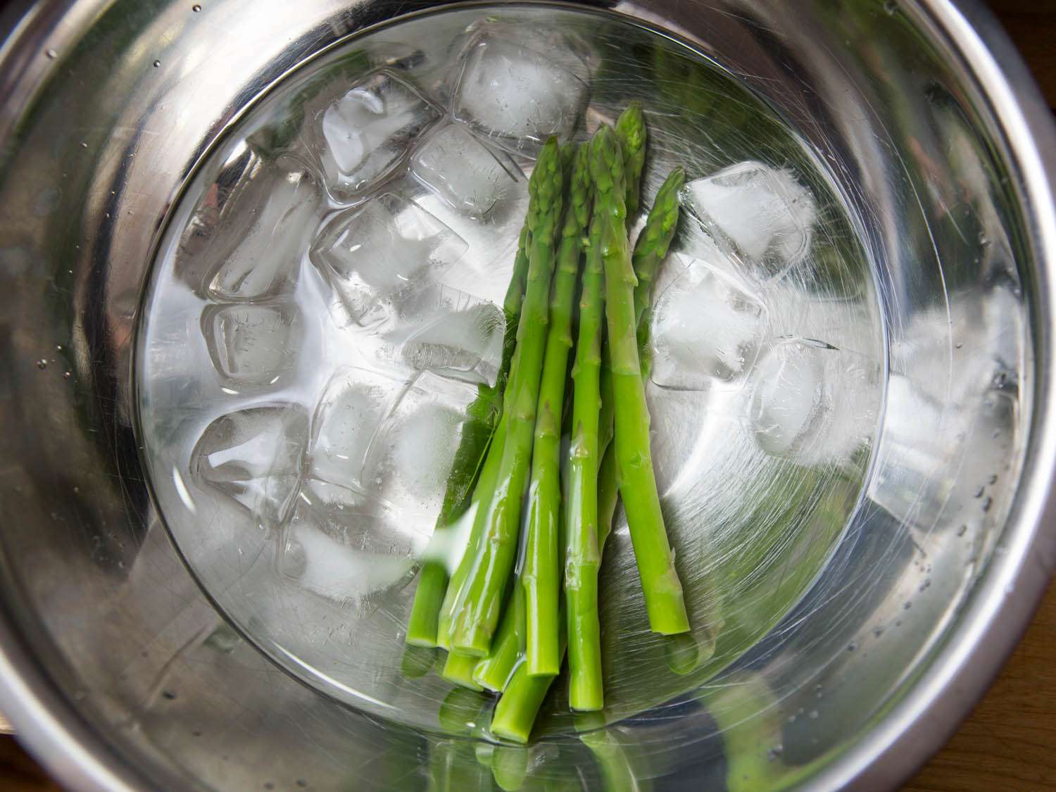 Uh oh. Seeing the results side-by-side, it was immediately clear that all of my lazy tap-water-chilling sessions had been a mistake. The ice-bath asparagus looked and tasted fresher, crisper, and greener. When I called my colleagues into the office for a blind tasting, without telling them what I was testing, they all picked out the ice-bath asparagus as the best.