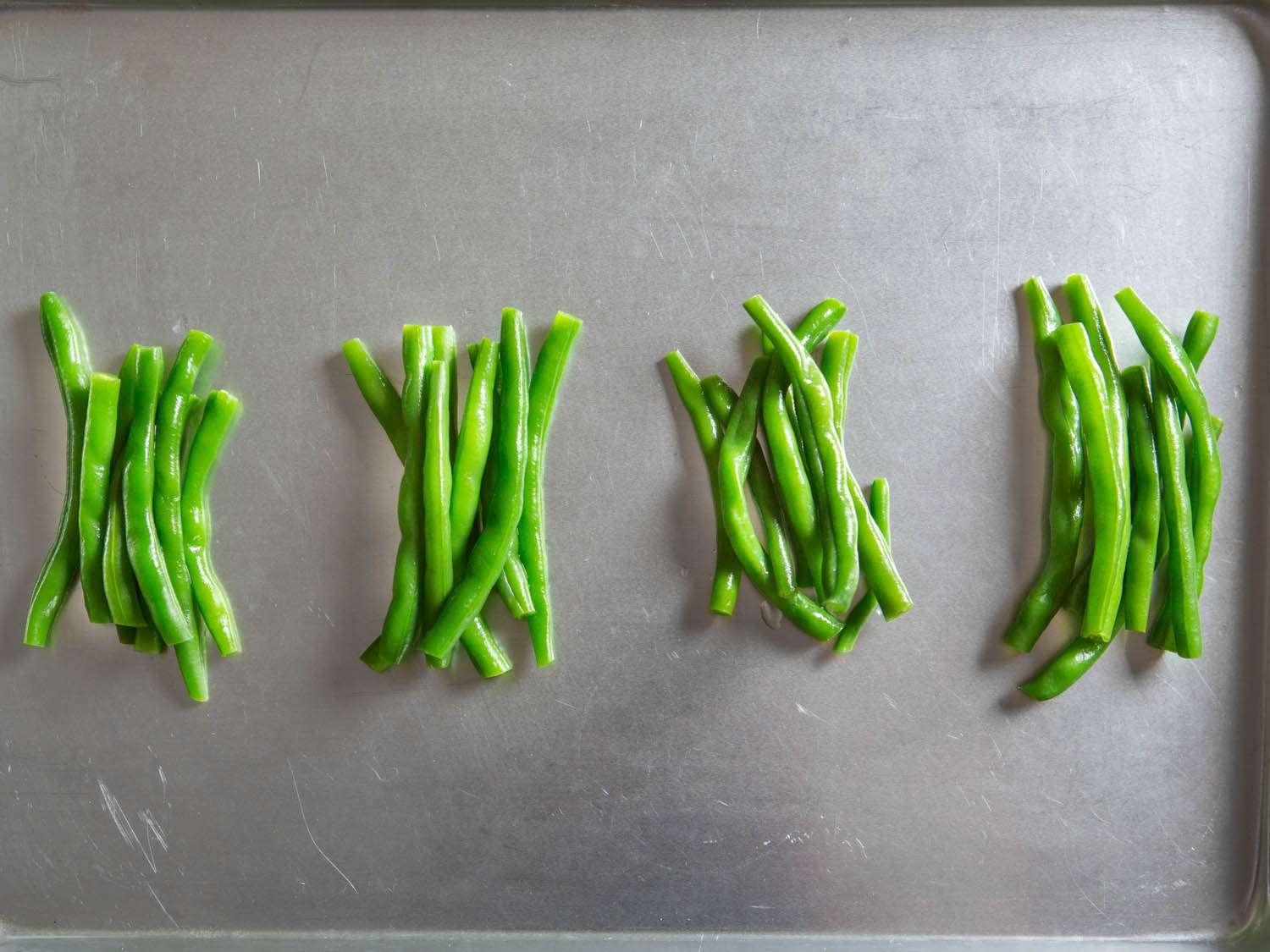 Here's the amazing thing: The textural differences were incredibly subtle. If anything, the unsalted boiling water had the best textural results with the crispest bite; the salted water produced beans that had a slightly softer exterior layer, as if the outermost cells had started to dissolve; the low-temp bath made beans that were nicely crisp-tender, but not quite as vivid as the others.