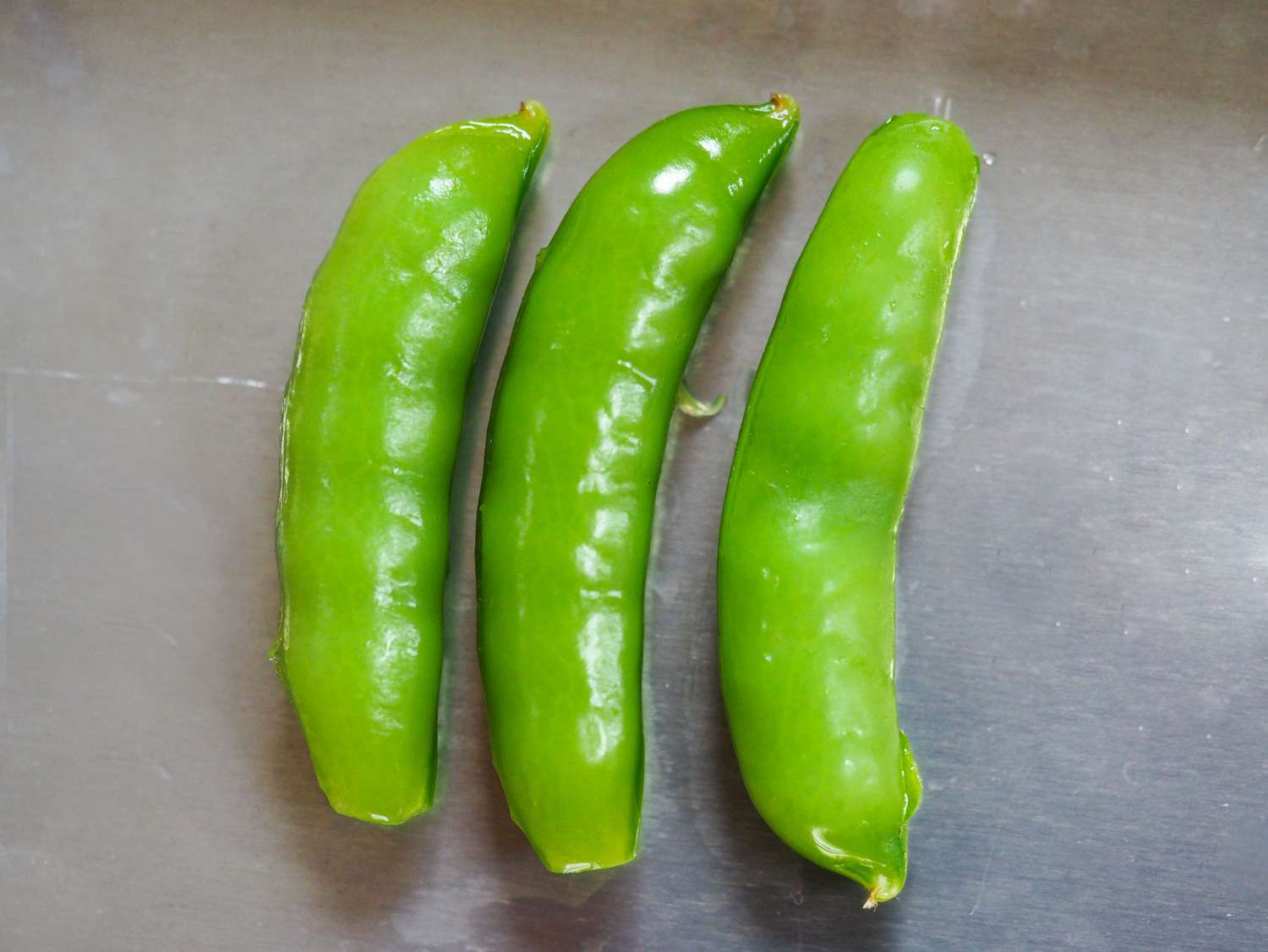 To test the temperature part, I set up my immersion circulator with a water temperature of 185°F. I wanted to cook a vegetable in that water from start to finish, just to compare sub-boiling temperatures to boiling. Then I put two pots with equal volumes of water on the stove, leaving one unsalted and salting the other to 3%, much more aggressively than I had before. This time, I cooked equal amounts of sugar snap peas I had bought over the weekend at the farmers market, shocking them in ice water as soon as they were done (for the two pots of boiling water, this was exactly the same cooking time; for the lower-temperature immersion circulator, I had to cook the peas for longer to reach a crisp-tender texture).