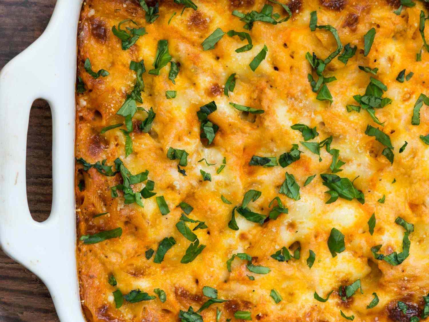 Growing up in an Italian-American household, we ate pasta nearly every night and often my dad would repurpose the leftovers as baked ziti. The cheesy baked pasta casserole has always been major comfort food, but it has its pitfalls. When using leftovers, the texture can end up softer than I prefer, yet making it from scratch feels like you’re making two meals when you have to cook the ziti first before baking it for almost an hour. Luckily, there’s a better way: no-boil baked ziti.