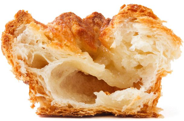 Texture: We liked the crispy, sticky caramelized top layer right off the bat. Because of the flatter shape, you don't get quite as much textural variety here as you do with the DKA, but the flaky layers are admirably well-defined, and there's some impressive hole structure. There's also a good mix of crunchy-toasty bits and soft, tender dough.
