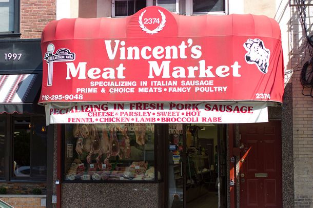 The neighborhood butcher tradition is alive and well on Arthur Avenue. Three dedicated butcher shops—Vincent's, Biancardi's, and Peter's—cover all your fresh meat needs from sirloin to pig brains to pheasant.