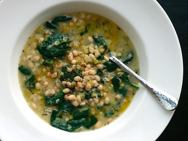 J. Kenji Lopez-Alt This hearty white bean soup with spinach flavored with garlic and rosemary is a great winter warmer, perfect for those evenings when you've just come home from a day on the slopes or from romping with the dogs in the park or taking photos of majestic snowy owls, or whatever it is that active winter folks do in this day and age. The real magic of the recipe is the way the starch released from the beans helps the extra-virgin olive oil (and do use your best extra virgin for this) to emulsify with the liquid, creating a rich, spoon-coating texture in no time at all.