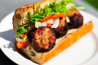 Once I was tweeting about the relative popularity of mayo versus butter as a sandwich spread when my pal Harold Dieterle made the observation that Vietnamese banh mi sandwiches are more popular in the US than they are in Vietnam. I think he's probably right. It's one of the handful of dishes that have come to represent Vietnamese cuisine on English-language menus. And, if banh mi are the hand-eaten snack, and pho is the spoon-fed hangover cure, then thit heo nuong xa—grilled pork chops with a sweet-and-savory marinade—are the knife-and-fork main course.