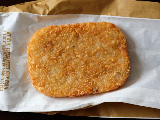 The hash brown is pretty big. It's crisp and lacy on the outside and starchy and soft on the inside. If you're oil-averse, you may want to steer clear—it absorbs quite a bit and is ultimately pretty greasy.