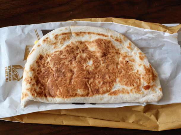While the steak isn't prime dry-aged beef, its flavor is a lot beefier than you'd expect. Imagine this as a portable fast food steak-and-egg plate, complete with hash browns. The jalapeño cream sauce helps cut through all the substance of the Crunchwrap, but the helpful cashier suggested I try a packet of picante sauce with it. It's just a little packet of the kind of salsa you'd ordinarily get out of a jar, but the vinegar and tomato adds some welcome, bright acidity. And the fact that the Crunchwrap is grilled makes a world of difference; the toasted exterior seems like a minor detail, but the processed flour tortilla seriously benefits from the grill-press.
