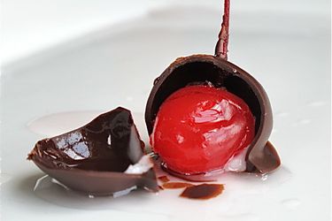 Everyone’s familiar with those neon-red orbs that perch atop sundaes and dwell in the depths of Manhattans. While I’m now kinda freaked out by the chemicals and processes that turn a natural piece of fruit into a freakish, preserved-for-eternity caricature of itself, I’ll admit to an inordinate fondness for them back in the day when my mom had to drive me to swim lessons and I considered Dr Pepper the ne plus ultra of liquid refreshment.