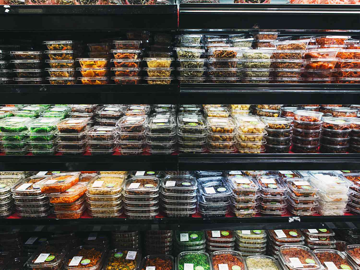 H Mart also carries a full line of prepared banchan, the small cold dishes that begin many a Korean meal. You'll have notice small plates of seasoned bean sprouts, myeolchi (salted, fermented anchovies), and pickled radishes, plus of course kimchi in every degree of heat and sourness.