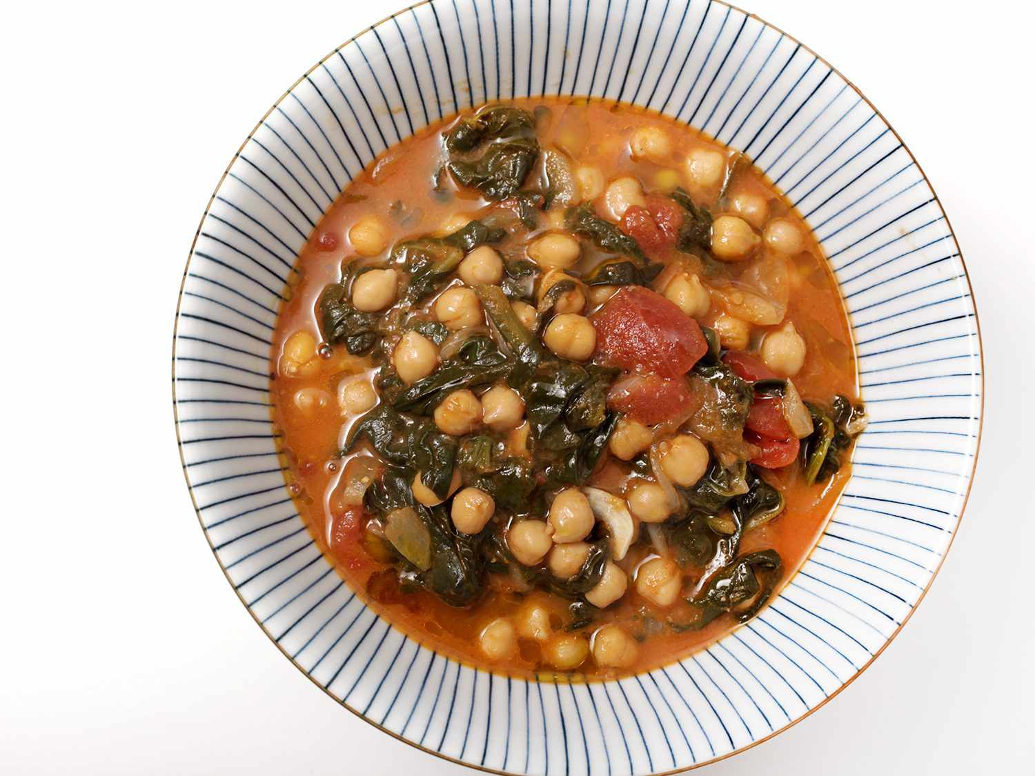 There's a reason Kenji calls this his favorite Serious Eats recipe. Okay—to be fair, I don't know if he loves it for the same reasons I do, but I can come up with a few possibilities. Like some of my favorite people, it's special because it doesn't require a lot of poking or prodding or huge expenditures of effort to be good. It combines a handful of really unassuming and ordinary features—chickpeas, tomatoes, fresh spinach, ginger, paprika, vinegar—but they're not quite ingredients you expect to see together, or not ingredients you've seen assembled in quite this way, and so they become exciting again. It doesn't ask too much. Canned beans are okay; white wine vinegar works if you don't have sherry. It plays happily with your vegan friends and converses easily with your health-nut family members. It's simple enough that you can start it at the end of a long workday and have energy to spare when it's done. When you sit down at the table with a bowl of it and a side of crusty bread, you'll let out one of those little sighs that say, I'm at home, and everything's okay. And that first bite, a mix of smoky from the paprika and earthy from the chickpeas and bright from the vinegar, will remind you that good and nourishing and easygoing, in food as in people, doesn't have to mean boring. —Miranda Kaplan, editor